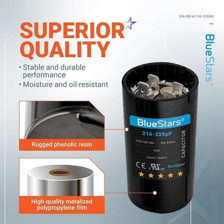 216-259 uF/MFD 110-125V Round Start Capacitor
