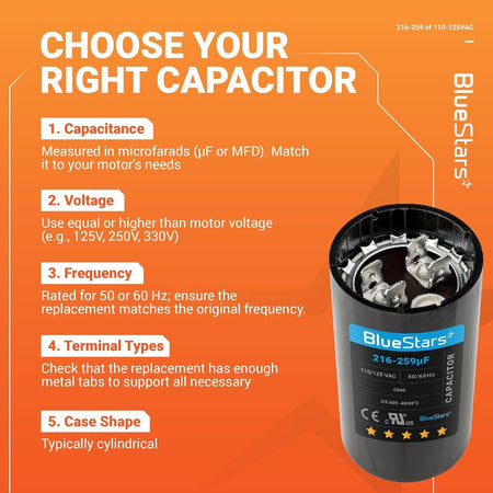 - Commonly used in HVAC units, air conditioners, compressors, and water pumps requiring a capacitor with matching specifications.
