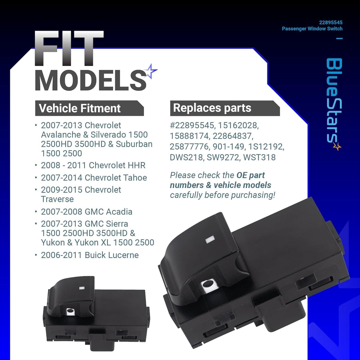 - Package: 1 x 22895545 Window Switch
