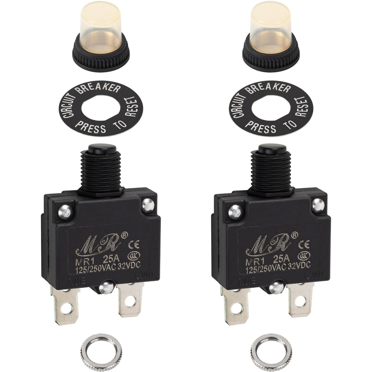 2-pack 25Amp Thermal Circuit Breaker 125/250V AC 32V DC