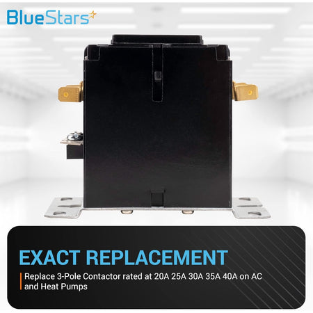 Replaces definite purpose contactors with matching 3-pole, 40A, and 240V AC coil specifications. Compatible with models from manufacturers including: