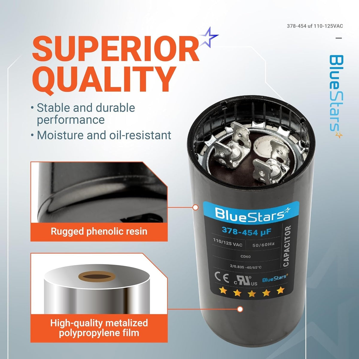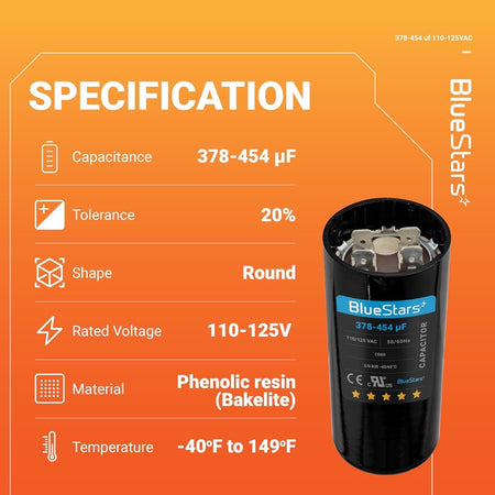 - Capacitance: 378-454 uf/MFD
