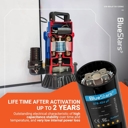 This capacitor provides your electric motors with exceptional electrical characteristics, including: