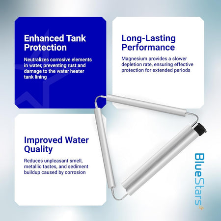 - Function: Provides sacrificial protection to extend the life of the water heater tank by preventing corrosion
