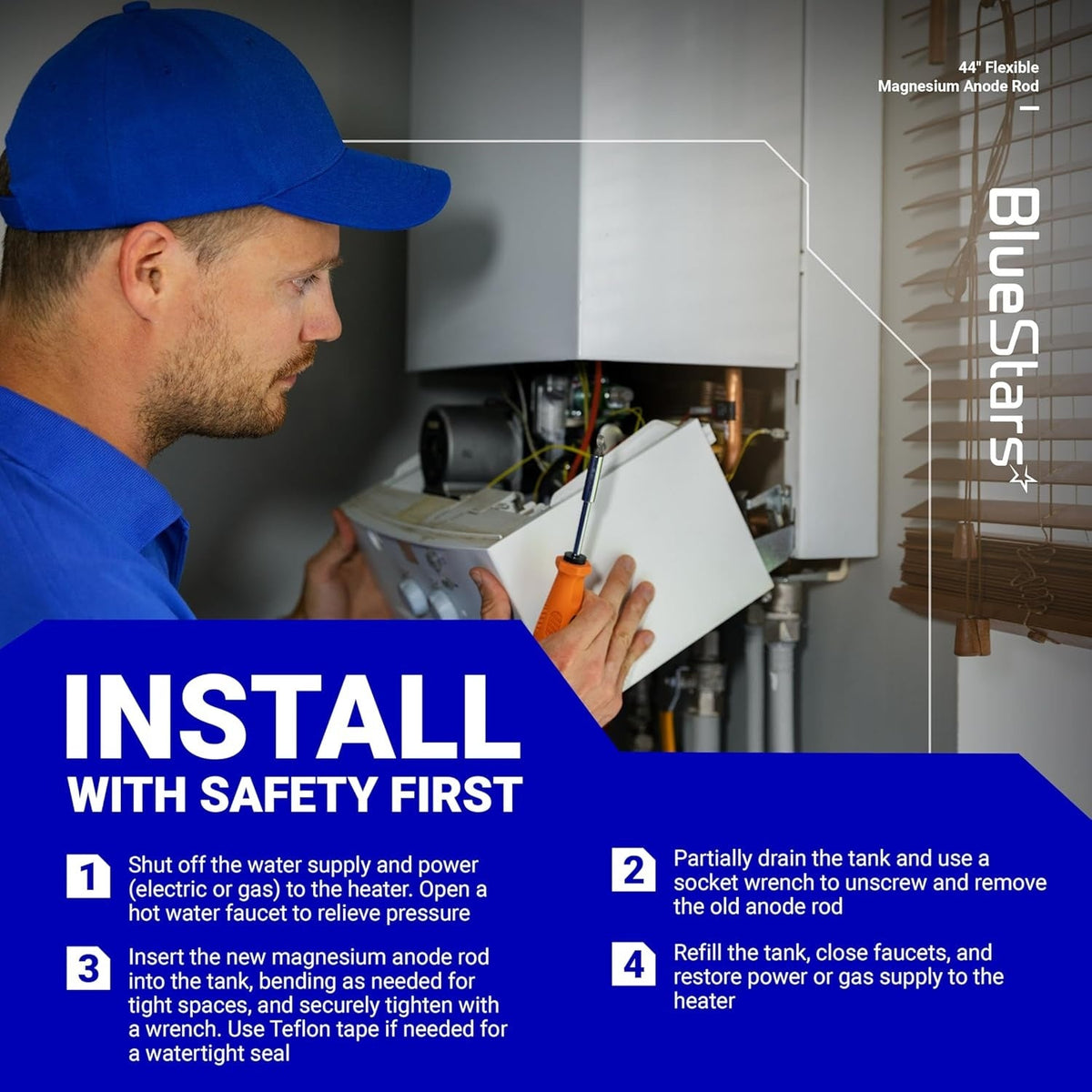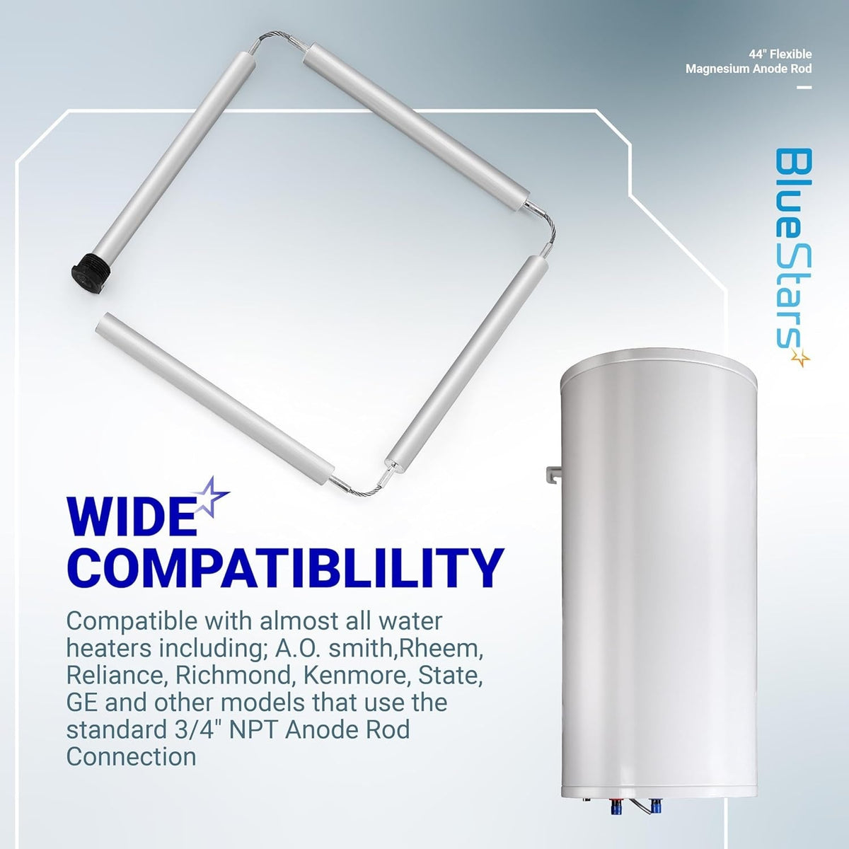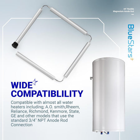 - Serves as a direct replacement for standard 44-inch magnesium anode rods with a 3/4 inch NPT connection.