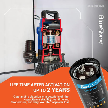 - This capacitor replaces any round motor start capacitor with the same capacitance (460-552 MFD) and voltage (110V, 115V, 125V) ratings.