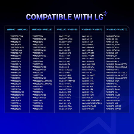 - Commonly used in models such as WM2016CW, WM2277HW, WM2801HLA, and WM3470HVA
