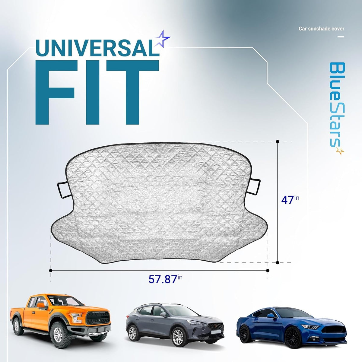 • Universal fit for most cars, trucks, and SUVs with windshields measuring up to 57" x 47".