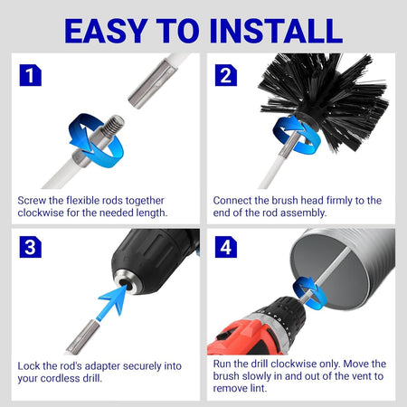 60-Feet Dryer Vent Cleaner Kit with Drill Attachment - Flexible Lint Remover Brush