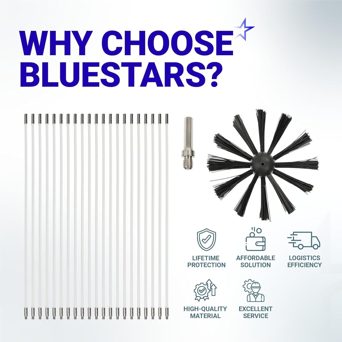 - Total Reach: Extends up to 60 feet for cleaning long vent runs.
