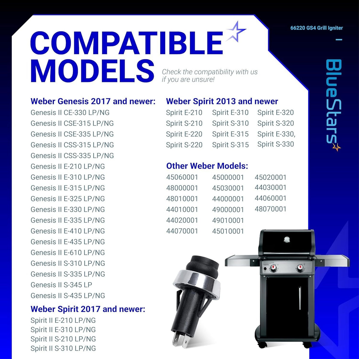 - Weber Genesis II S-310, E-310 (Natural Gas/Liquid Propane/GBS Gas Grills, 2017 and newer)
