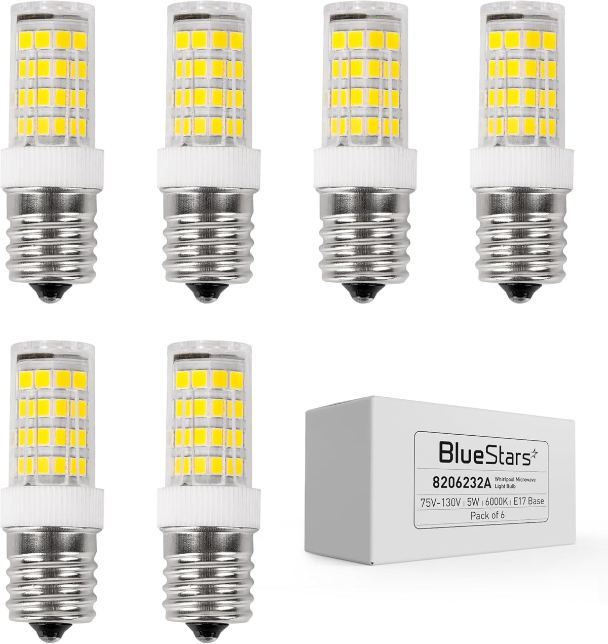 5W E17 LED Bulb 8206232A Dimmable LED Light Bulbs, 6000K Cold Daylight, 40W Equivalent, 75V-130V, 400 lumens for Refrigerator Microwave and Range Hood - Pack of 6