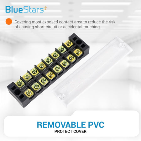 - The pre-insulated barrier strips are designed with a standard pitch to align with the screws on the dual-row terminal blocks.