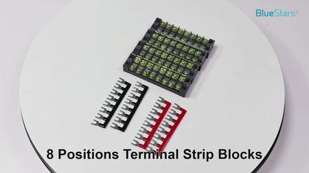 - Package includes four 8-position dual-row screw terminal blocks and four 8-position pre-insulated barrier strips (2 red, 2 black).