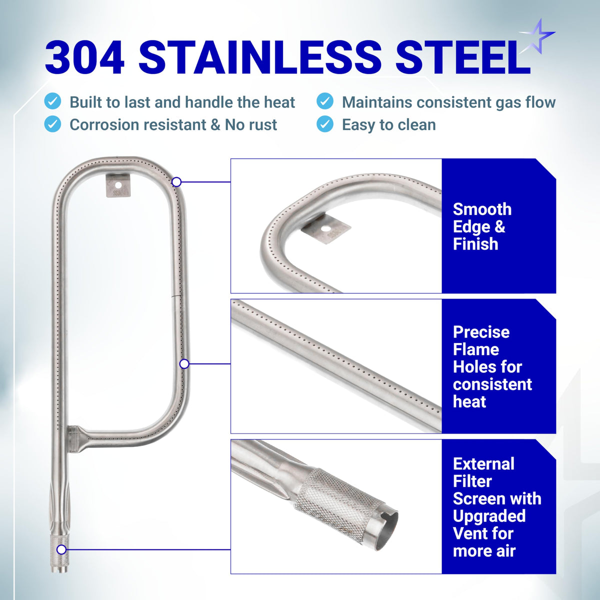 - Burner tube features precision-drilled flame ports for even heat distribution.