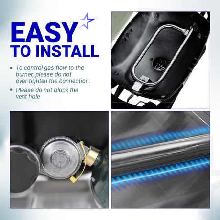 - After installation, perform a leak test using a soapy water solution on all connections before lighting the grill.