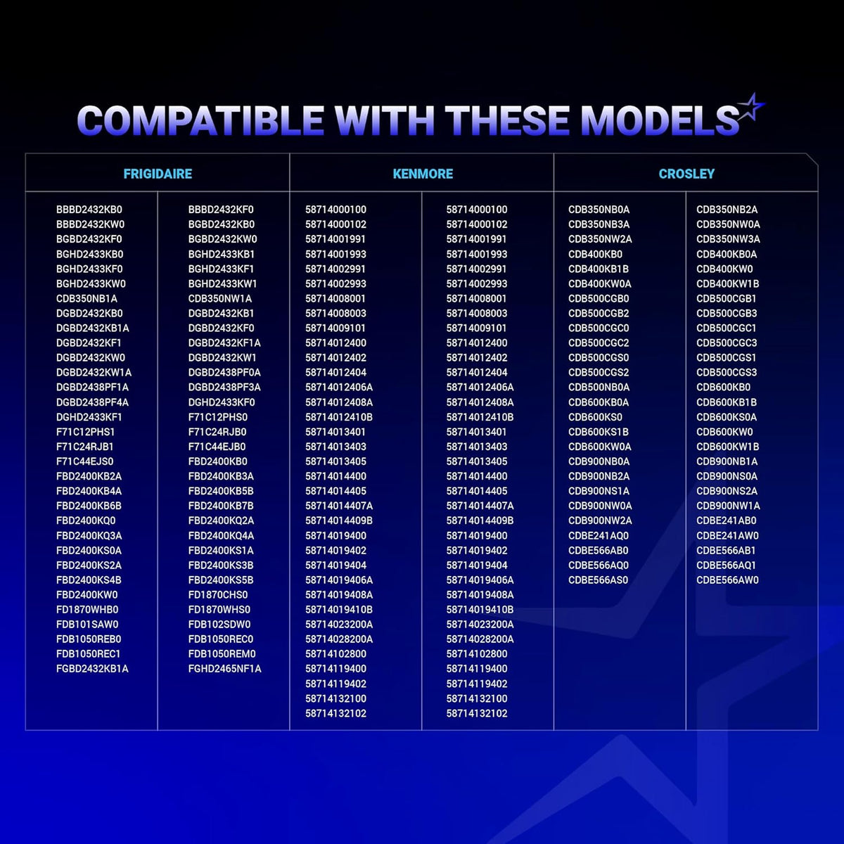 - Fits specific dishwasher models manufactured by Frigidaire, Electrolux, Crosley, Gibson, and Kelvinator.