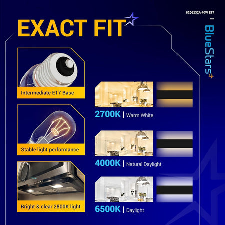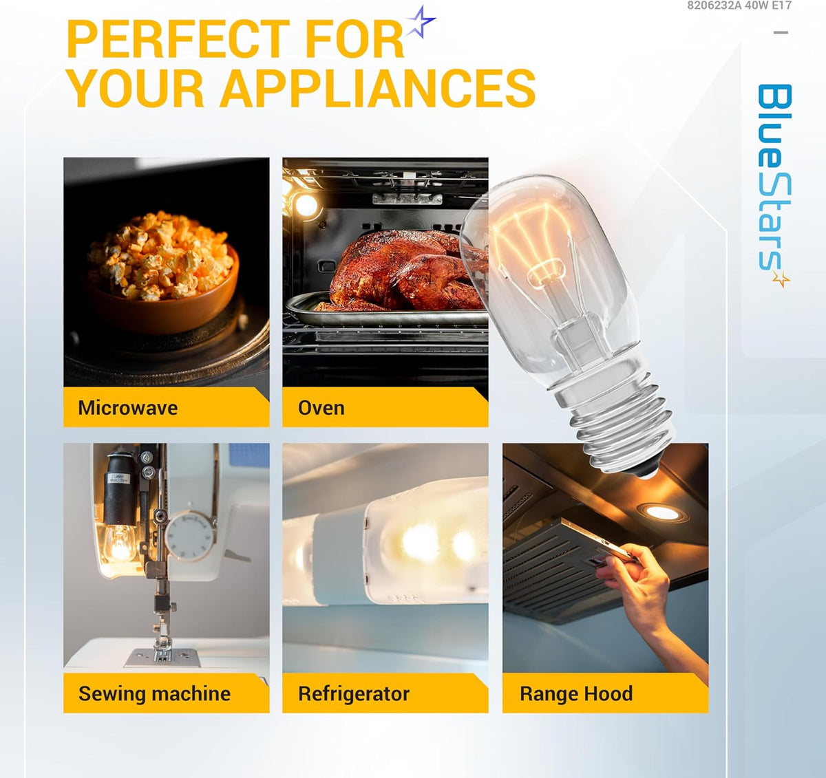 BlueStars 8206232A Light Bulb is great for Microwave, Oven, Range Hood, Refrigerator, Salt Lamp, Lava Lamp, etc.