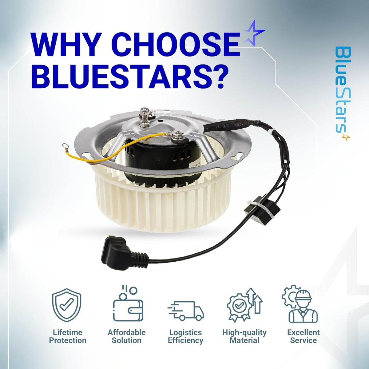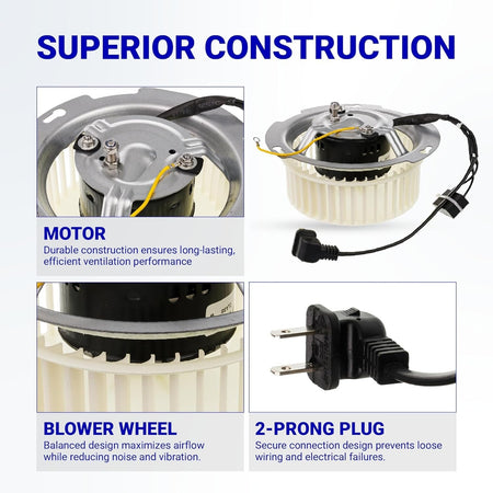 - Complete assembly includes motor, blower wheel, and mounting bracket