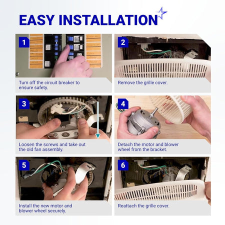 - Clean the fan housing and ductwork of dust and debris before installing the new assembly.