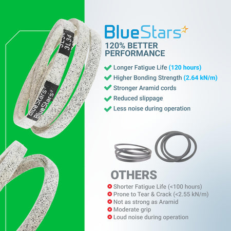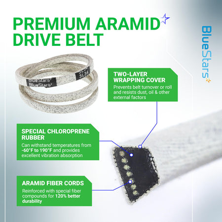 - Material: Rubber compound with aramid fiber reinforcement cords for tensile strength and durability.