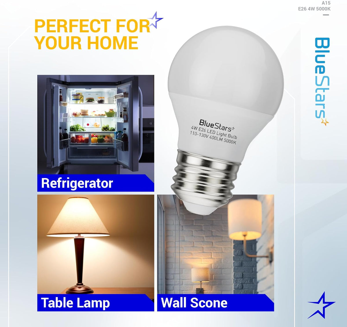 - Compatible with major appliance brands that specify an A15 bulb with an E26 base.