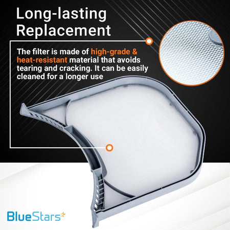 - Constructed with a durable stainless steel mesh screen for improved lint capture.