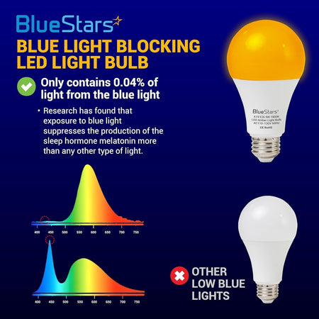 Amber Sleep Light Bulbs - Blue Light Blocking, 9W A19, 1800K Warm, E26 Base, 4-Pack