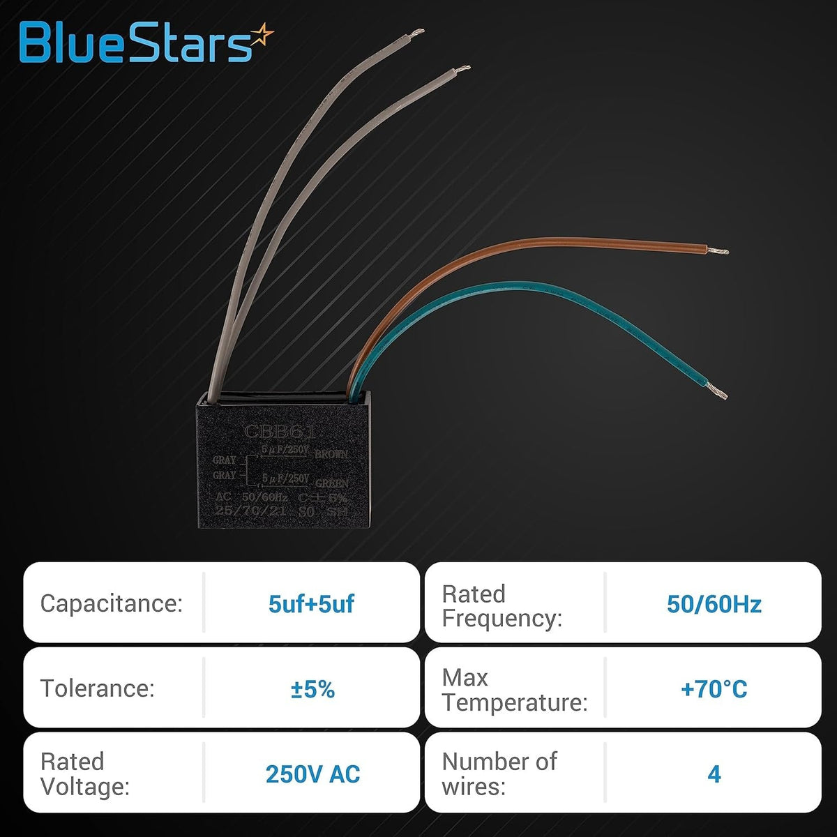 - Direct replacement for any CBB61 capacitor with matching 5uf+5uf capacitance, 4-wire configuration, and a 250V AC or higher voltage rating.