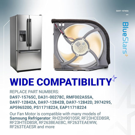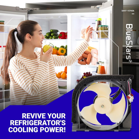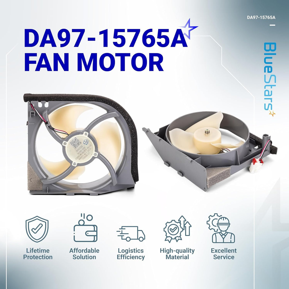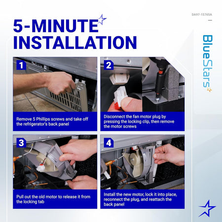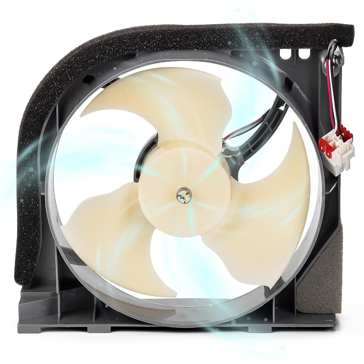 • The condenser fan is typically located behind a rear access panel at the bottom of the unit.