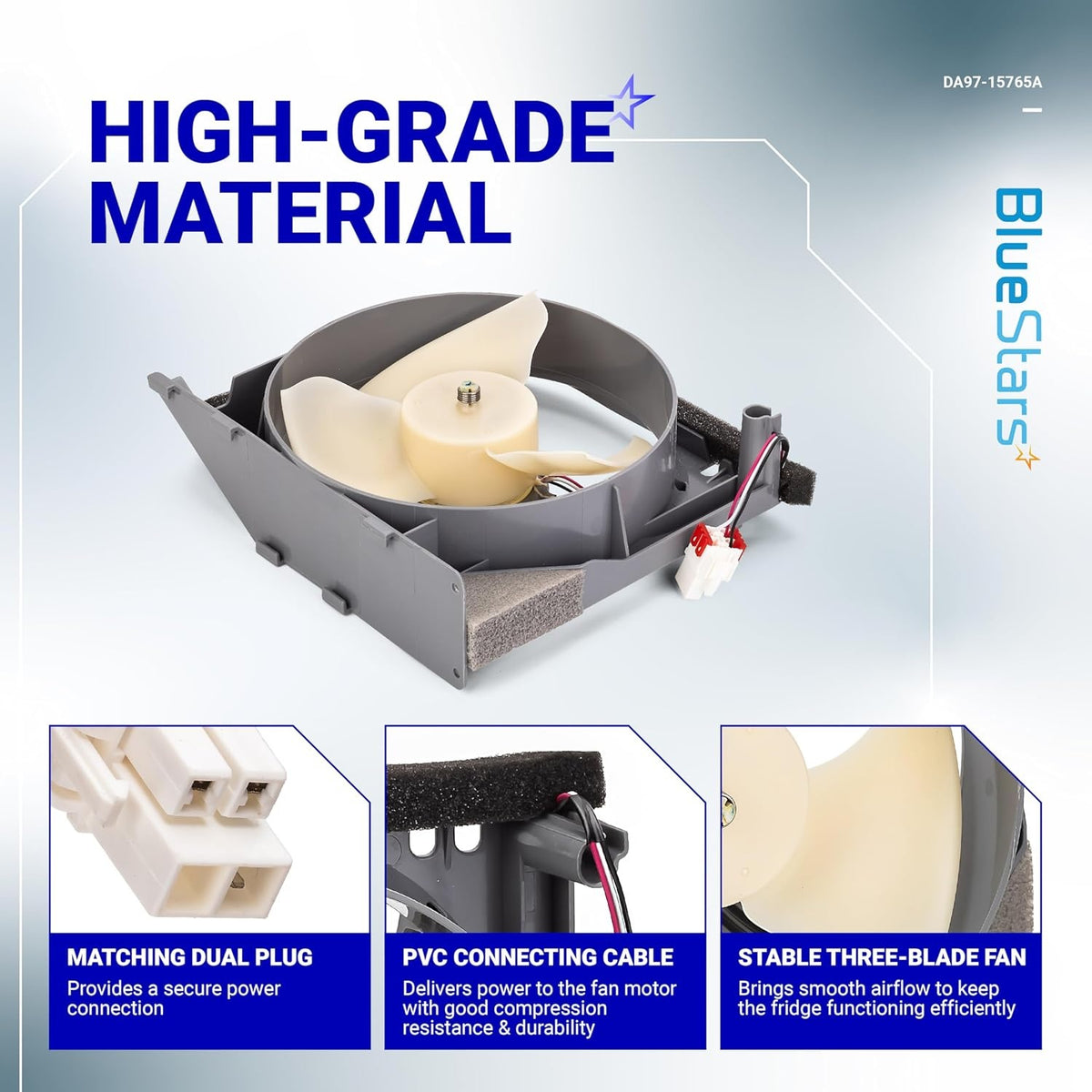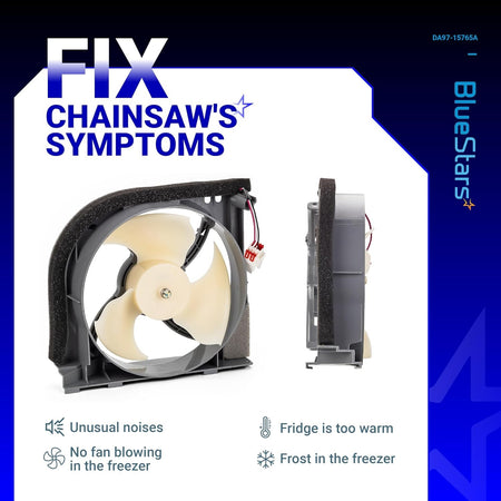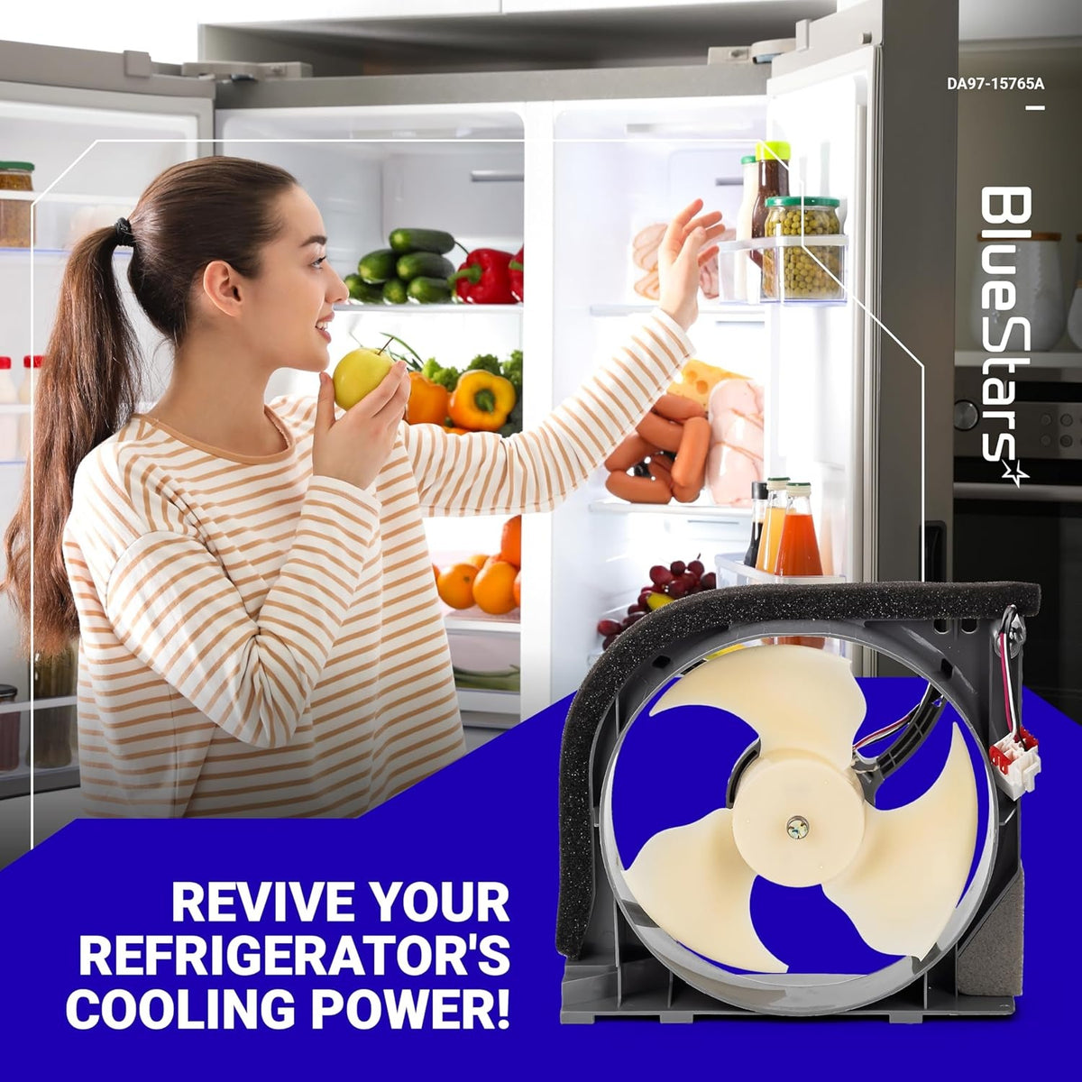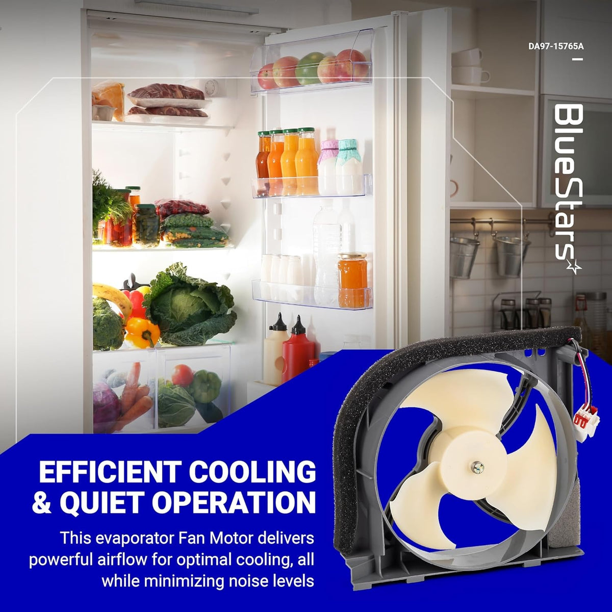• The condenser fan is typically located behind a rear access panel at the bottom of the unit.