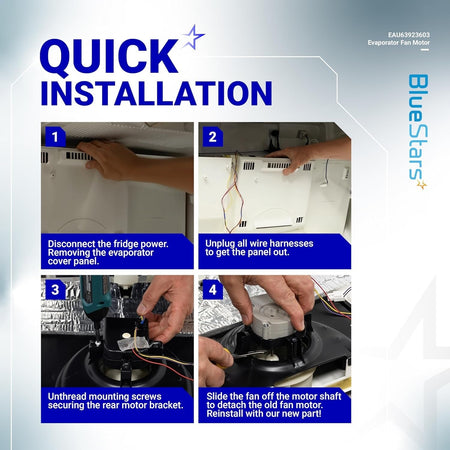 - The evaporator fan motor is located behind a panel inside the fresh food compartment.