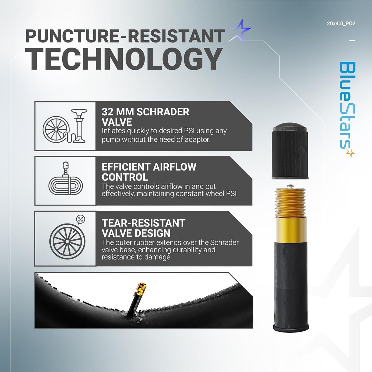 - Standard Schrader Valve for Easy Inflation: The reliable Schrader valve is compatible with most standard bike pumps, providing an easy inflation process. Designed for secure attachment, it maintains consistent air pressure.