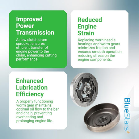 - Facilitates smooth rotation of the clutch drum and sprocket assembly.