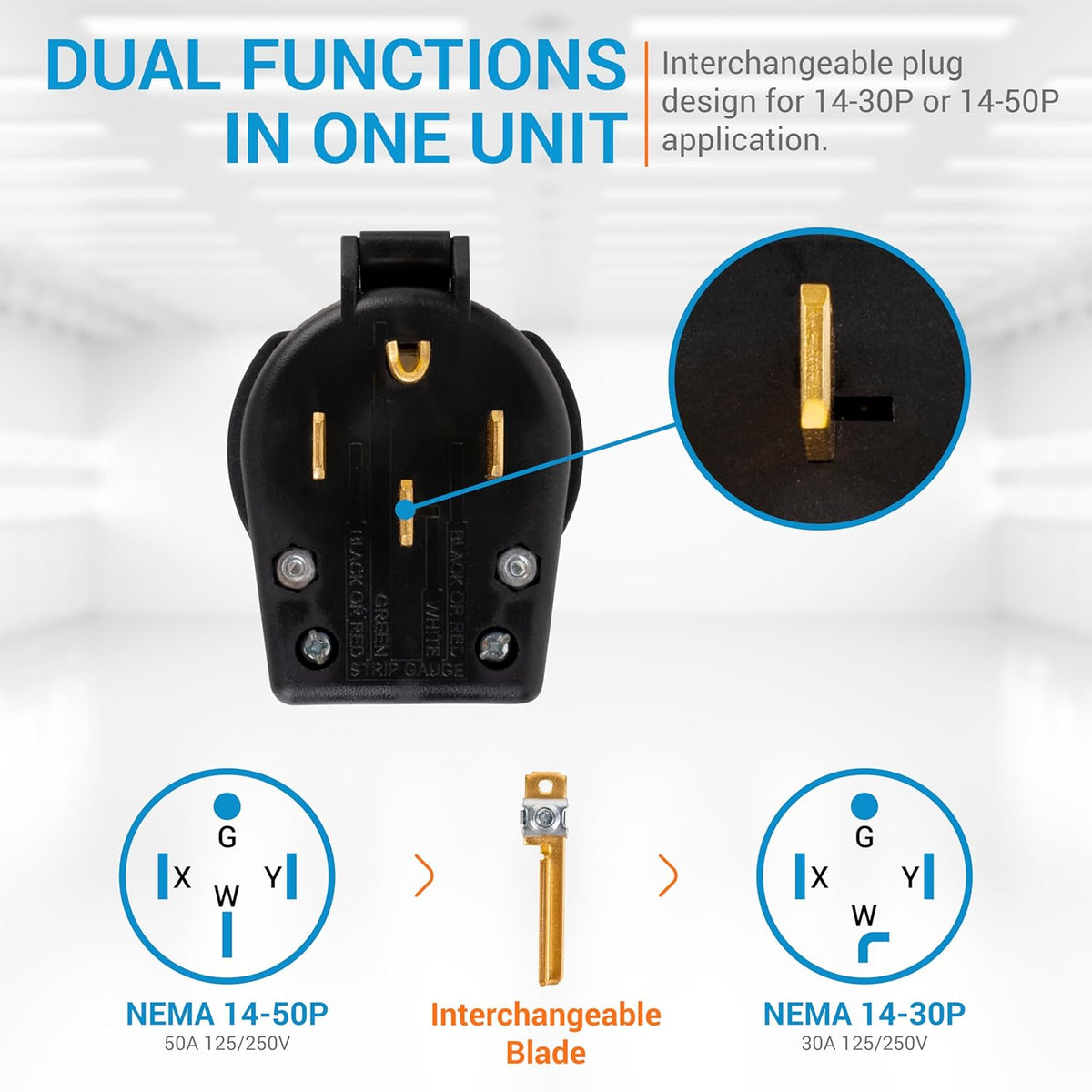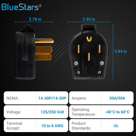 • Direct replacement for any plug with NEMA 14-30P or NEMA 14-50P specifications.