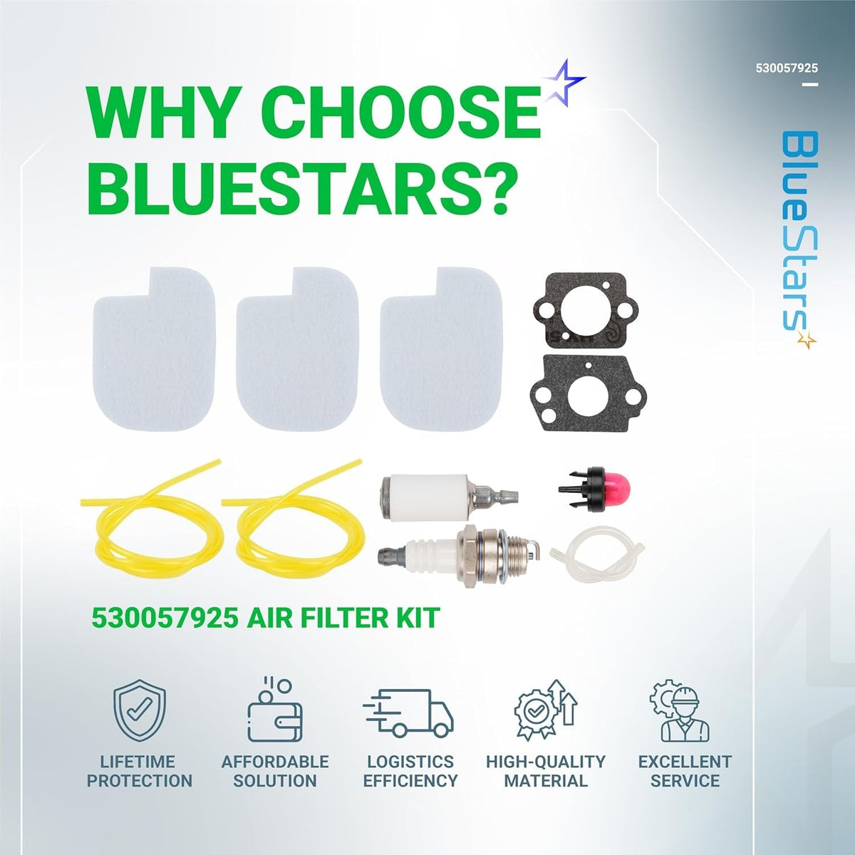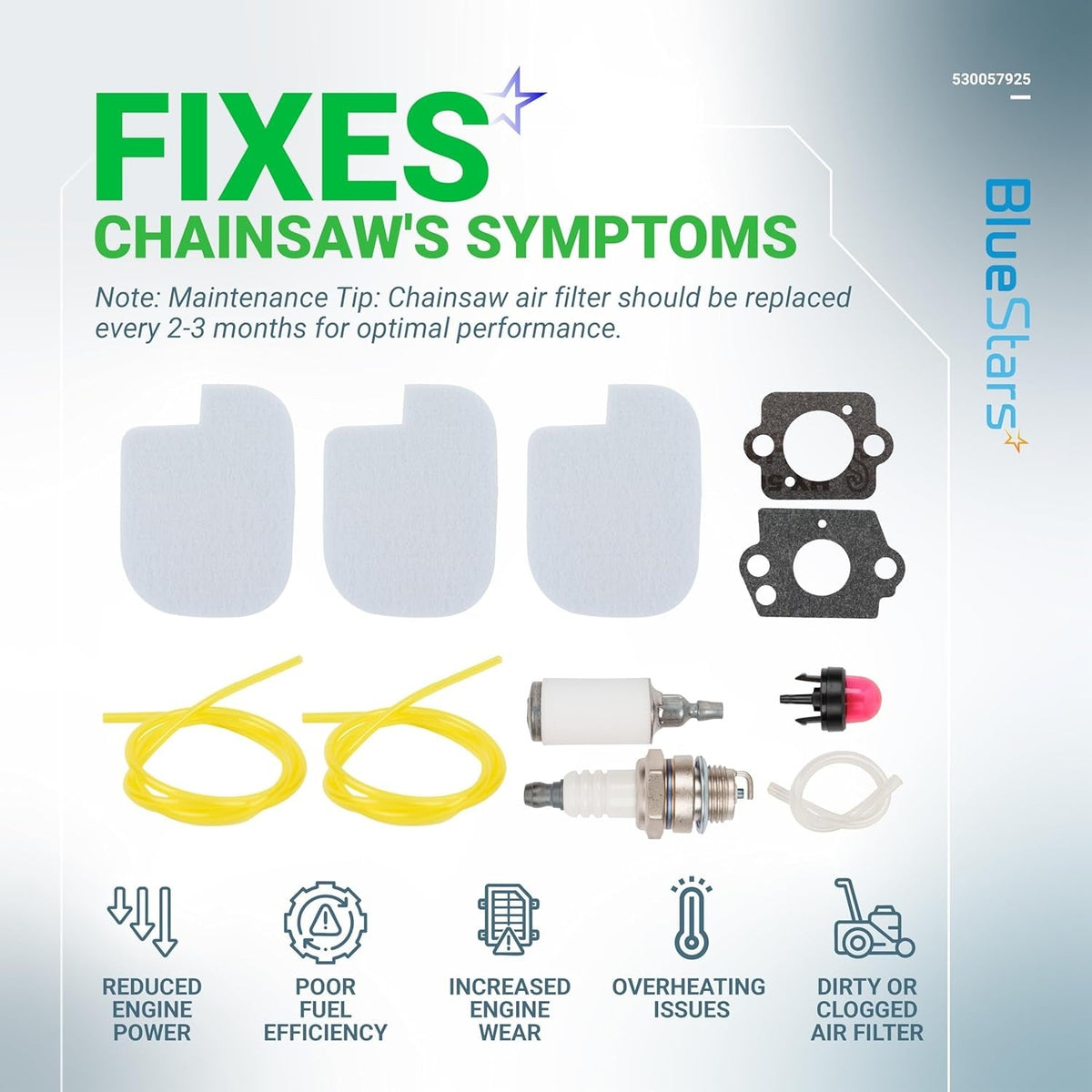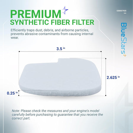 - Filters airborne debris to protect the engine carburetor and internal components