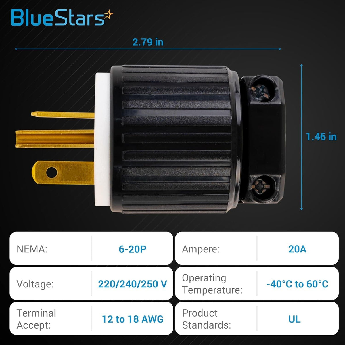 Pack of 2 NEMA 6-20P Electrical Male Plugs