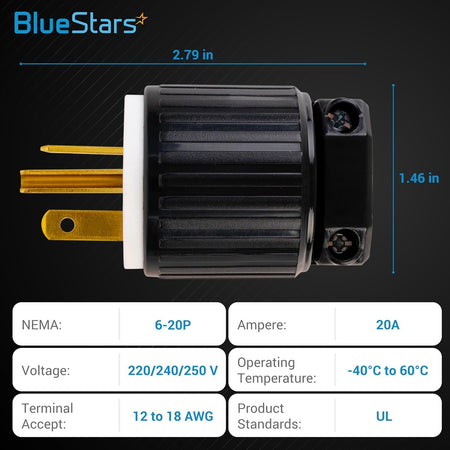 Our NEMA 6-20P replacement plug ends are crafted for durability, and capable of withstanding frequent use.