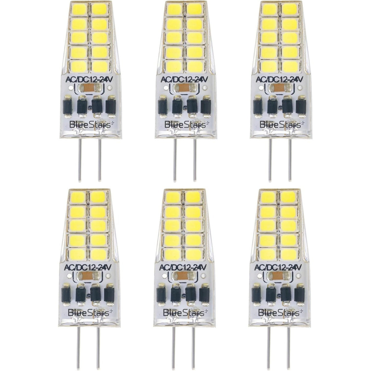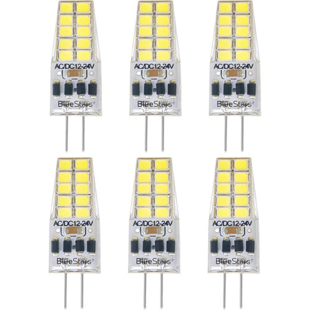 Pack of 6 G4 LED Bulb 2W Equivalent 30W Daylight 6000K 250Lm 360°Beam Angle AC/DC 12V G4 Bi-Pin Base - T3 Halogen Bulb Replacement for Outdoor Landscape Lighting Chandeliers - Dimmable