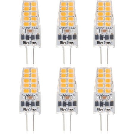 Pack of 6 G4 LED Bulb 2W Equivalent 30W Warm White 3000K 250Lm 360°Beam Angle AC/DC 12V G4 Bi-Pin Base - T3 Halogen Bulb Replacement for Outdoor Landscape Lighting Chandeliers - Dimmable