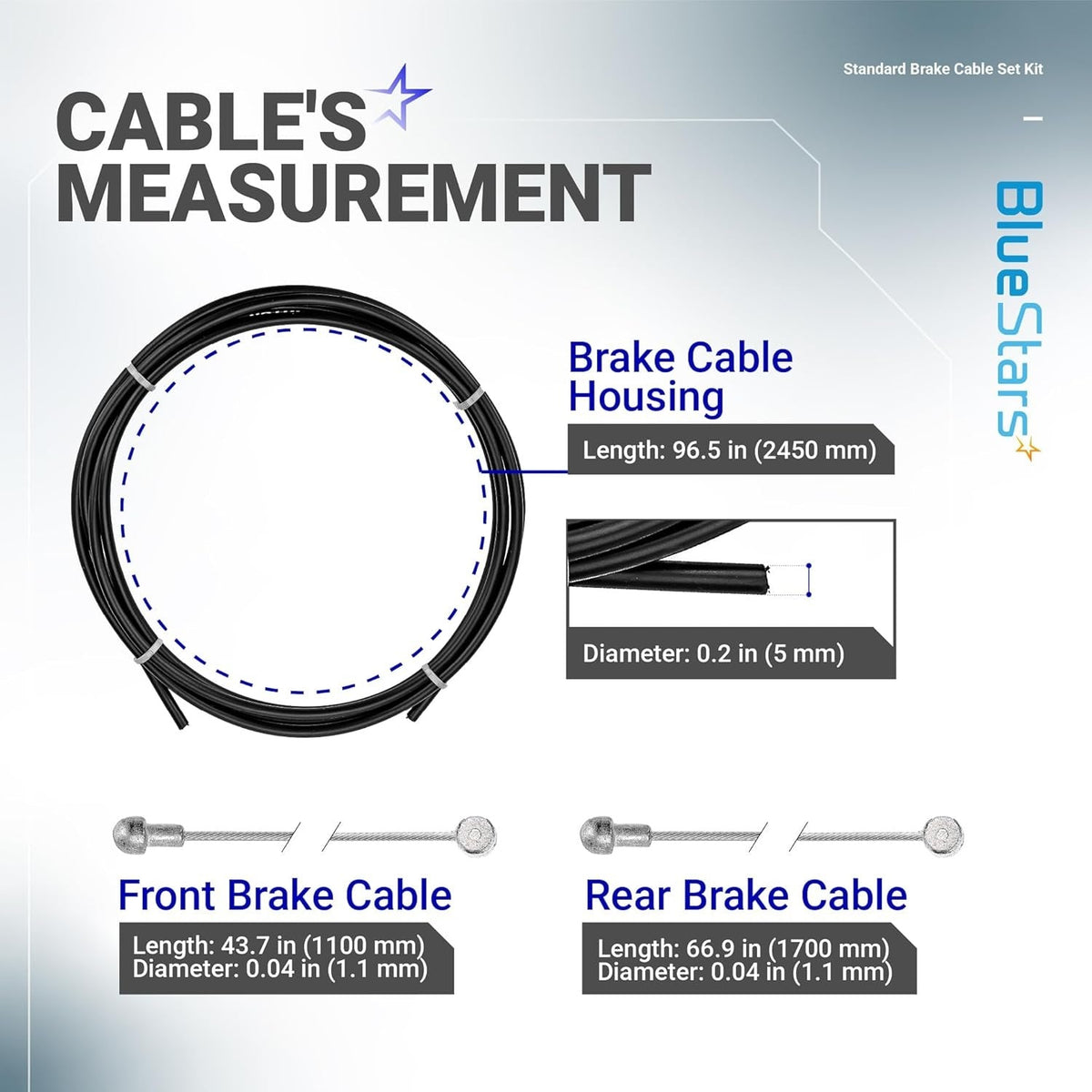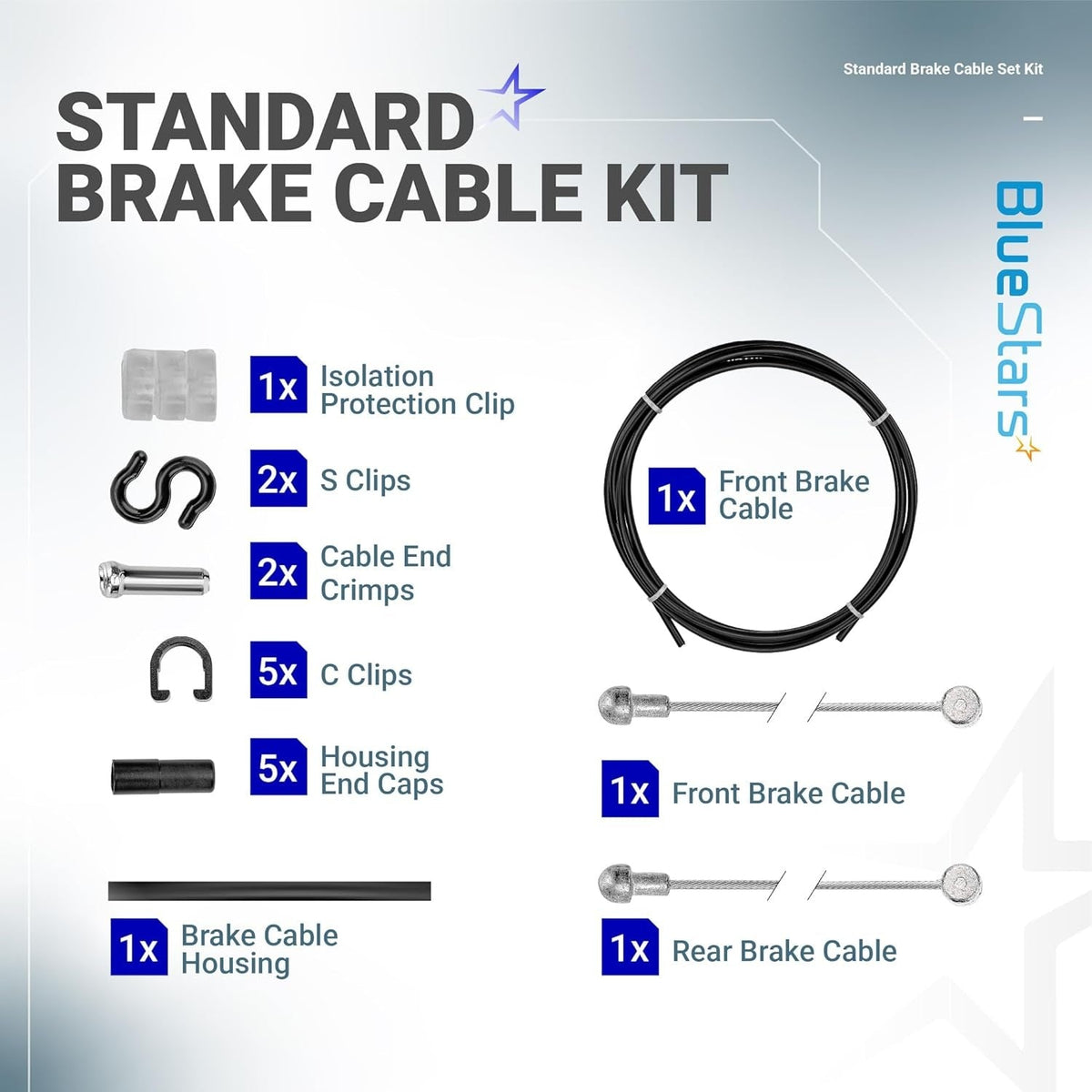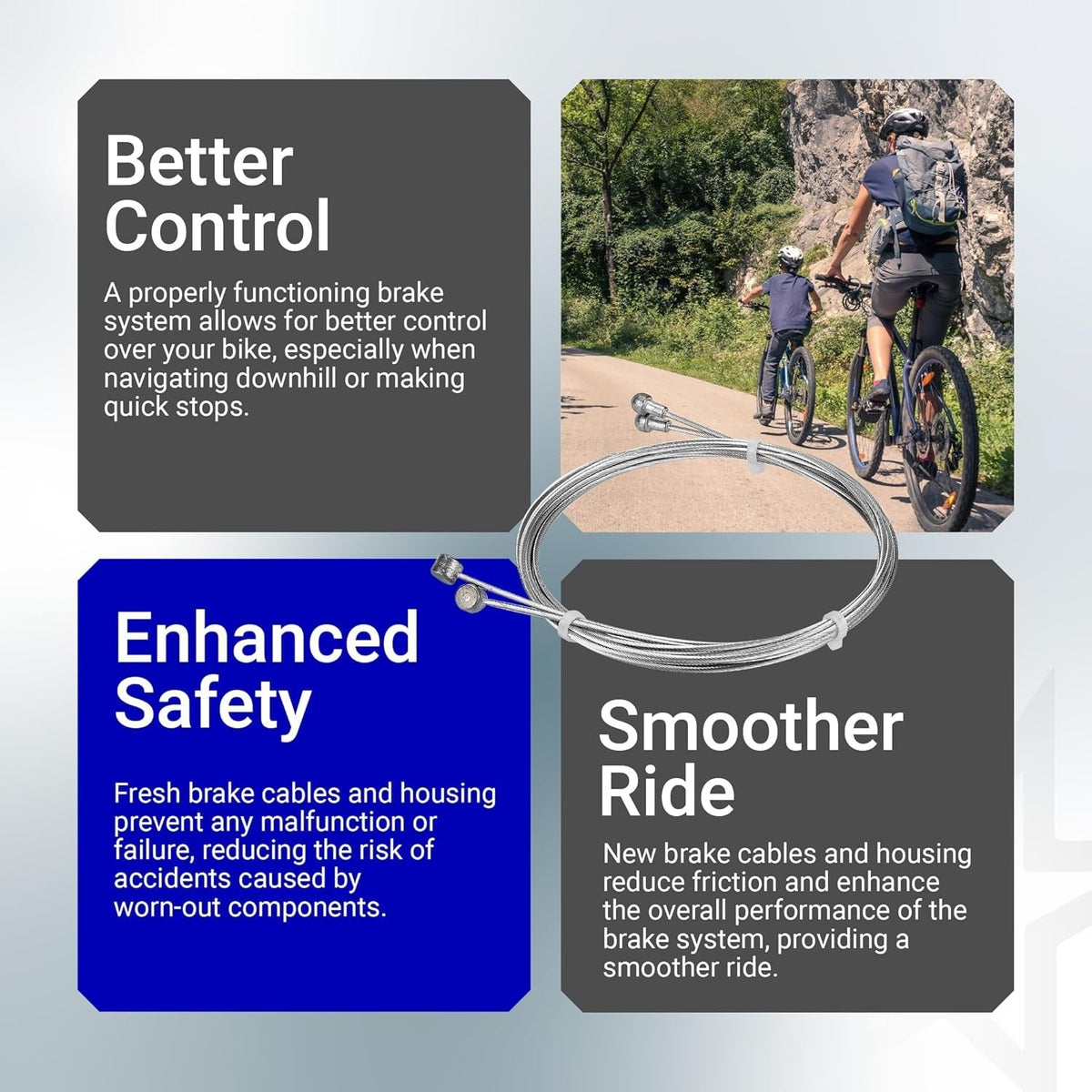 - Complete Set: Includes two brake cables, one continuous length of brake housing, ferrules, and cable end caps for a full front and rear brake replacement.