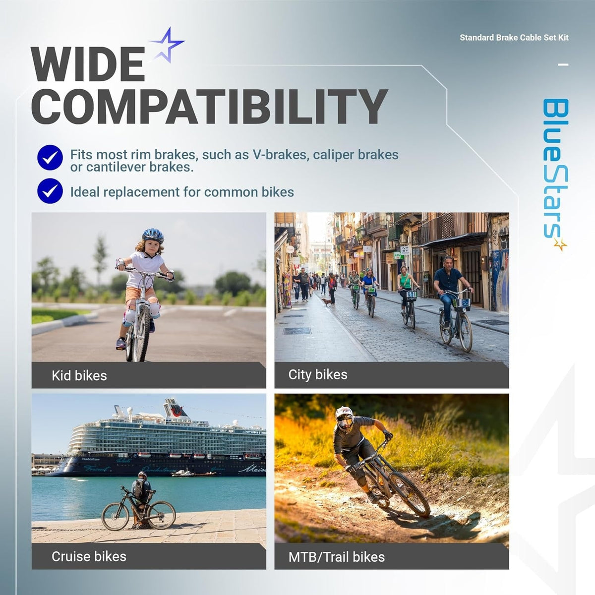 Premium Universal Bike Brake Cable Set - Include Front and Rear Brake Cables & Housing - Complete Brake Replacement Kit for Mountain, Trail, Cruisers, MTB, City Bikes