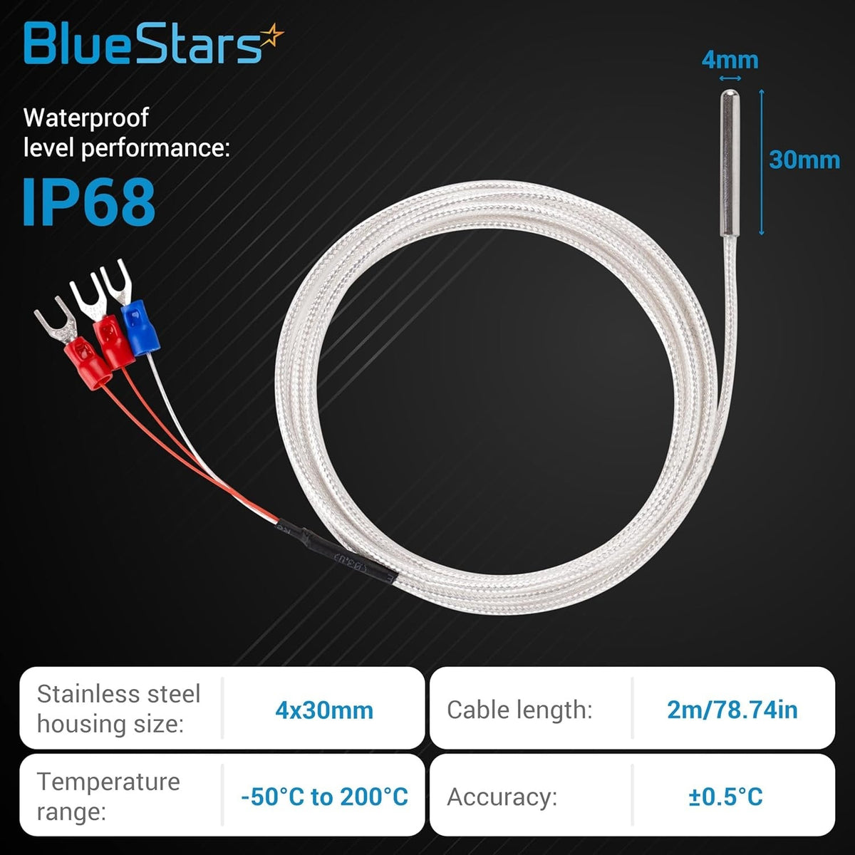 - Probe Sheath: Stainless steel construction for durability and corrosion resistance