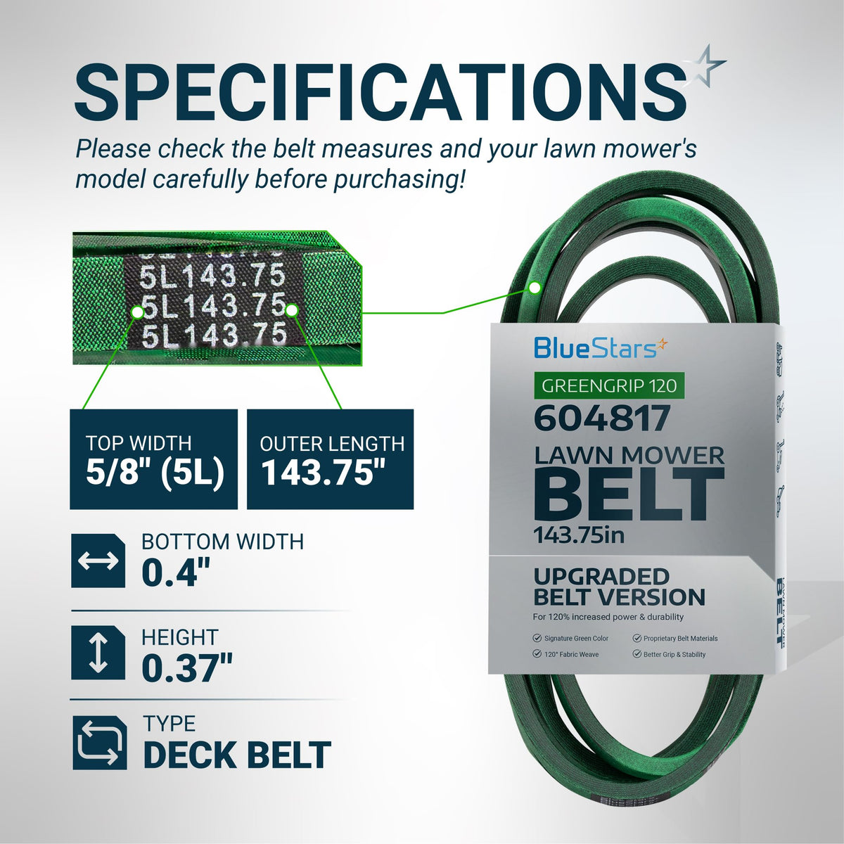 [Upgraded Grip120] 604817 Mower Deck Belt (5/8" x 143.75")
