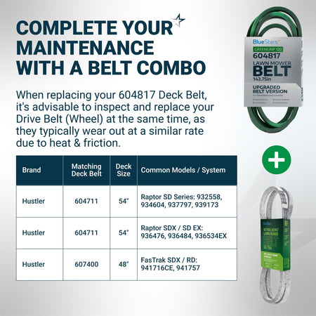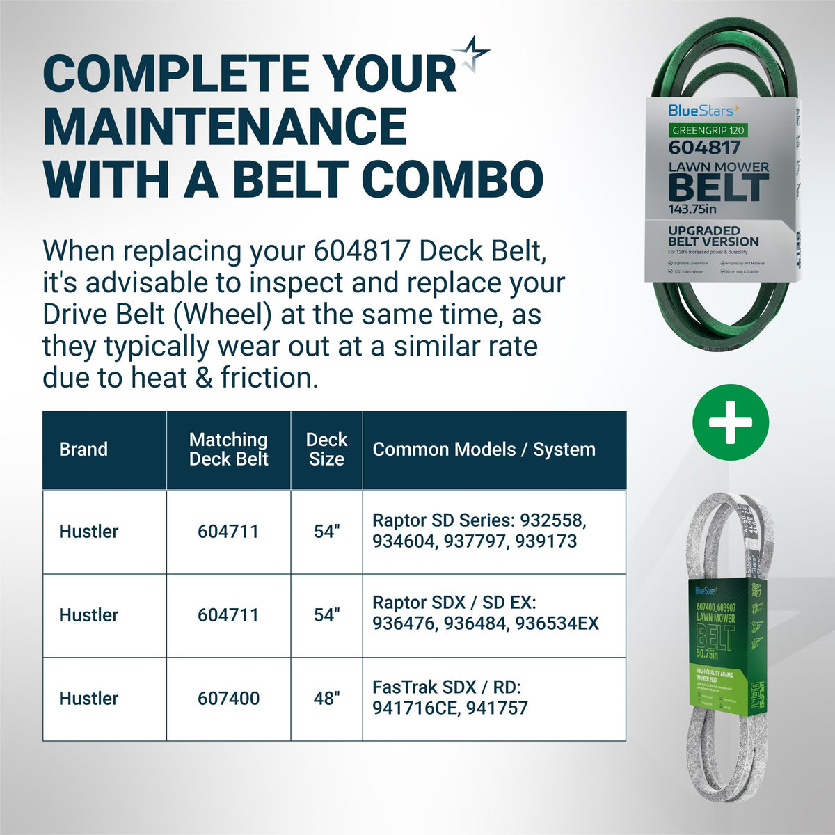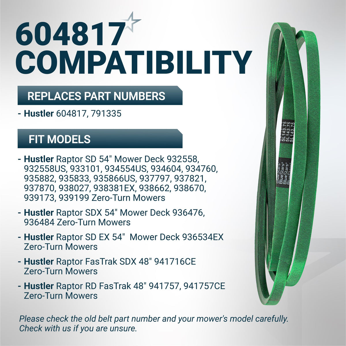 [Lifetime Warranty] [Upgraded Grip120] 604817 Mower Deck Belt - for 54 inch Deck Hustler Raptor SD SDX RD FasTrak Zero Turn Mowers 932558 934604 791335 933101 934760 935882 935833 | 5/8" x 143.75"