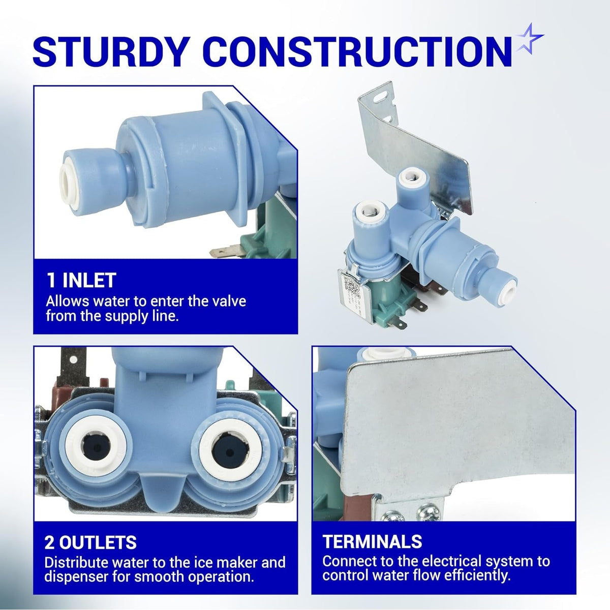 - Controls water flow to the refrigerator ice maker and water dispenser.