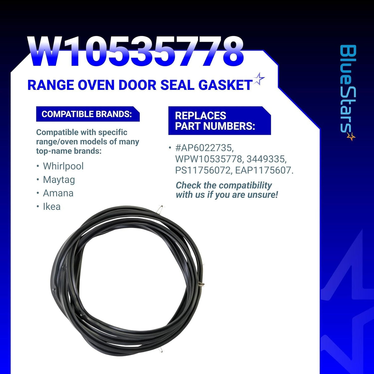 [Lifetime Warranty] W10535778 Range Oven Door Seal Gasket