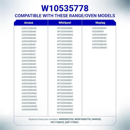 • Compatible with select models from brands including Whirlpool, Amana, and Maytag.