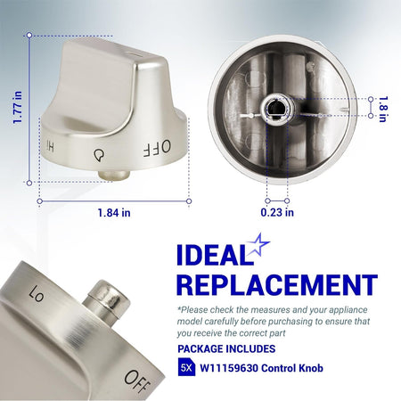 W11159630 W11023139 Surface Burner Knob Control Knob - Pack of 5