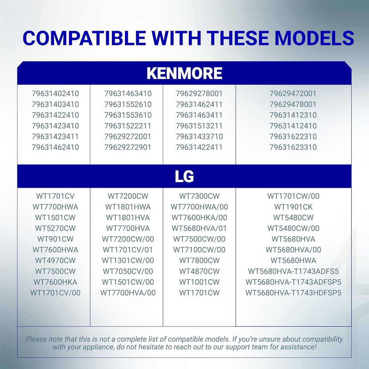 • Example compatible LG models include: WT1701CV/00, WT7200CW/00, WT1301CW/00, WT7050CV/00, WT1501CW/00, WT7700HVA/00, WT7150CW.